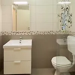 Lägenheten är försedd med te/kaffebryggare, sitthörna och TV med satellitkanaler. Duschkabin och separat toalett finns här.